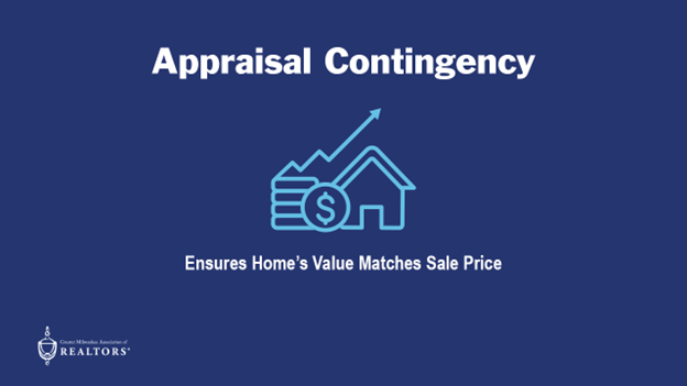 “The appraisal contingency provides protection for the buyer by stating that the property’s value must be in line with the offer price,” says Kollmansberger. “If an appraised value comes in lower than the offer price, the contingency outlines the options for the buyer.”